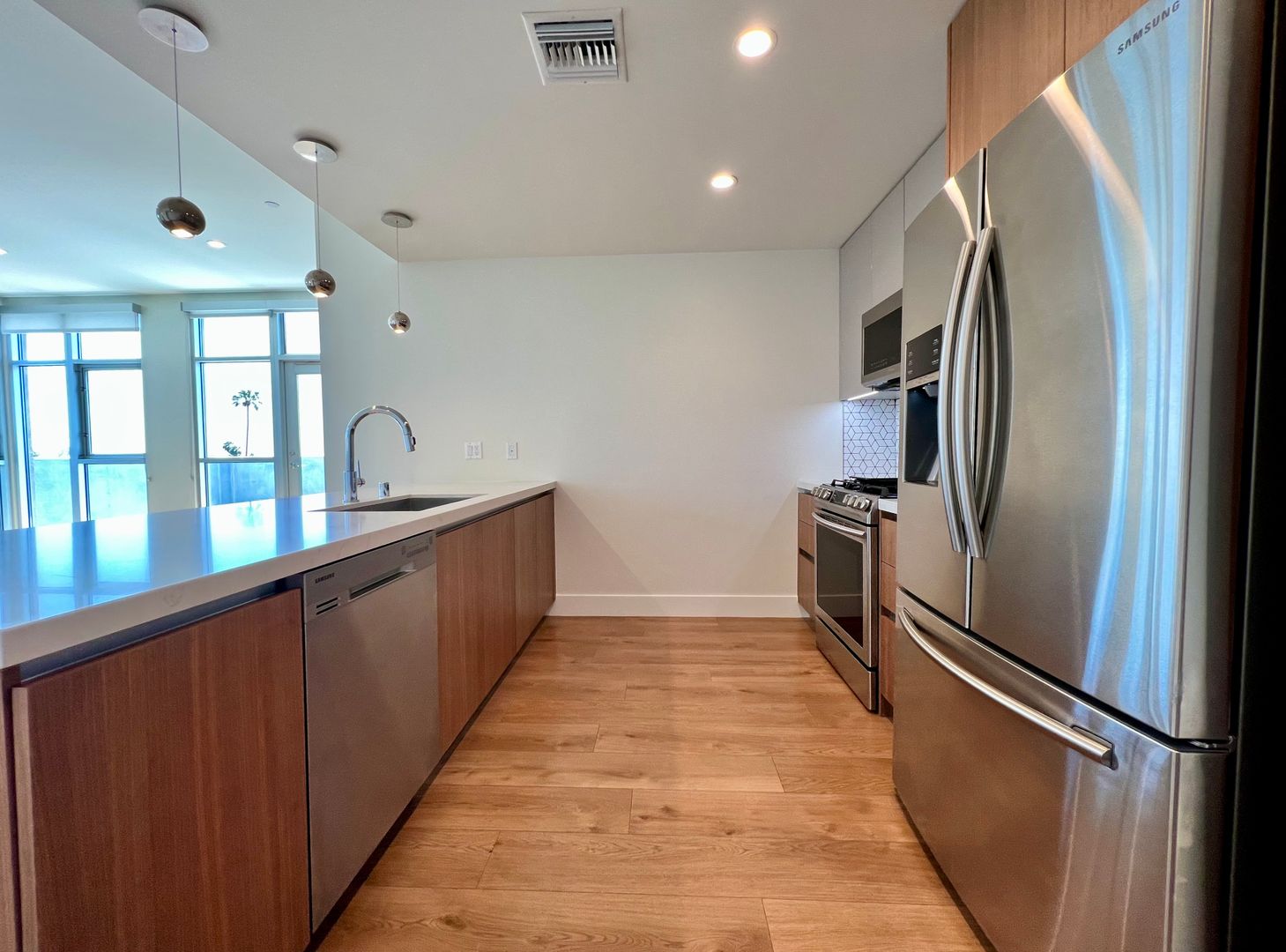 Empire Property Group is proud to present this fabulous 2 bedroom 2 bath residence for lease at Empire at Norton. Located on the 4th floor of the property, this large 1215 SF unit has southern and eastern exposures providing beautiful natural light and sweeping views of the city. Featuring 9 FT ceilings, floor to ceiling windows, stainless steel Samsung appliances, Italian designed kitchen cabinetry with marbled quartz countertops, washer and dryer in unit, ample storage throughout, and a 300 SF private terrace to enjoy the fabulous Los Angeles weather... all making this unit a must-see.