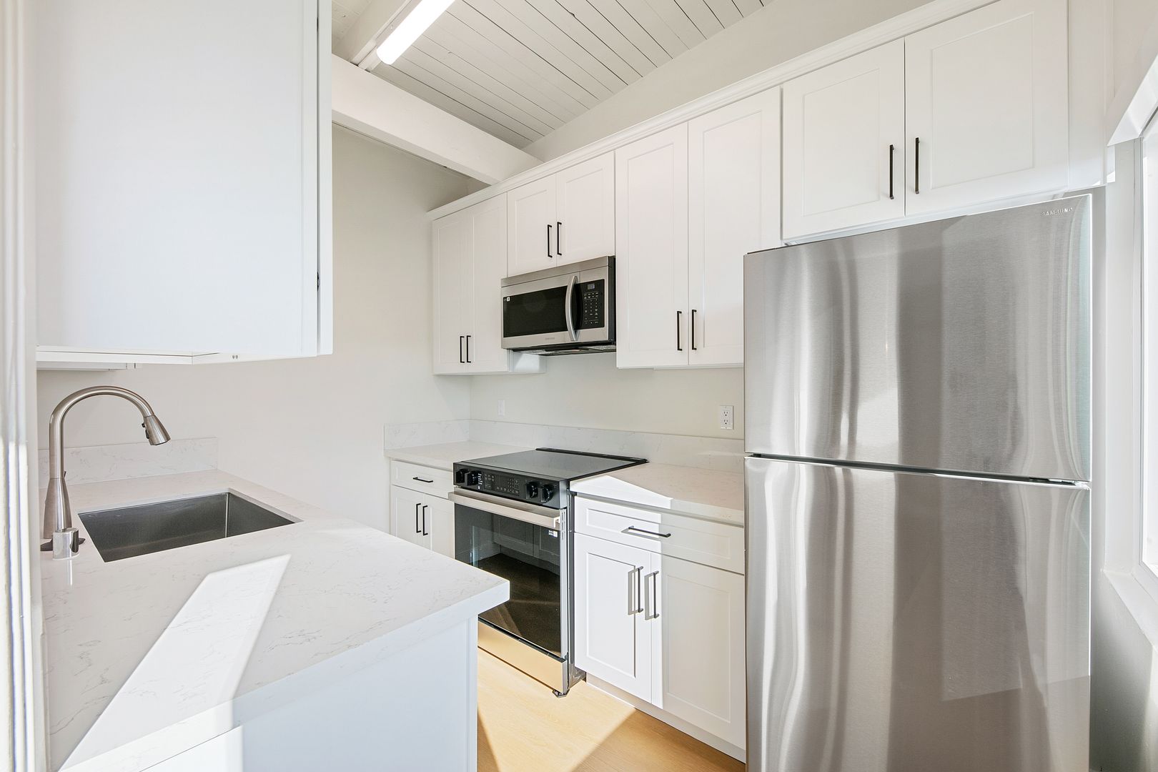 Studios from $1,950* with four distinct floor plans to choose from. Each home features premium finishes and contemporary design—wide-plank flooring, quartz countertops, and Samsung stainless-steel appliances—for a refined urban living experience. Empire at San Vicente is stylish urban living made effortless.