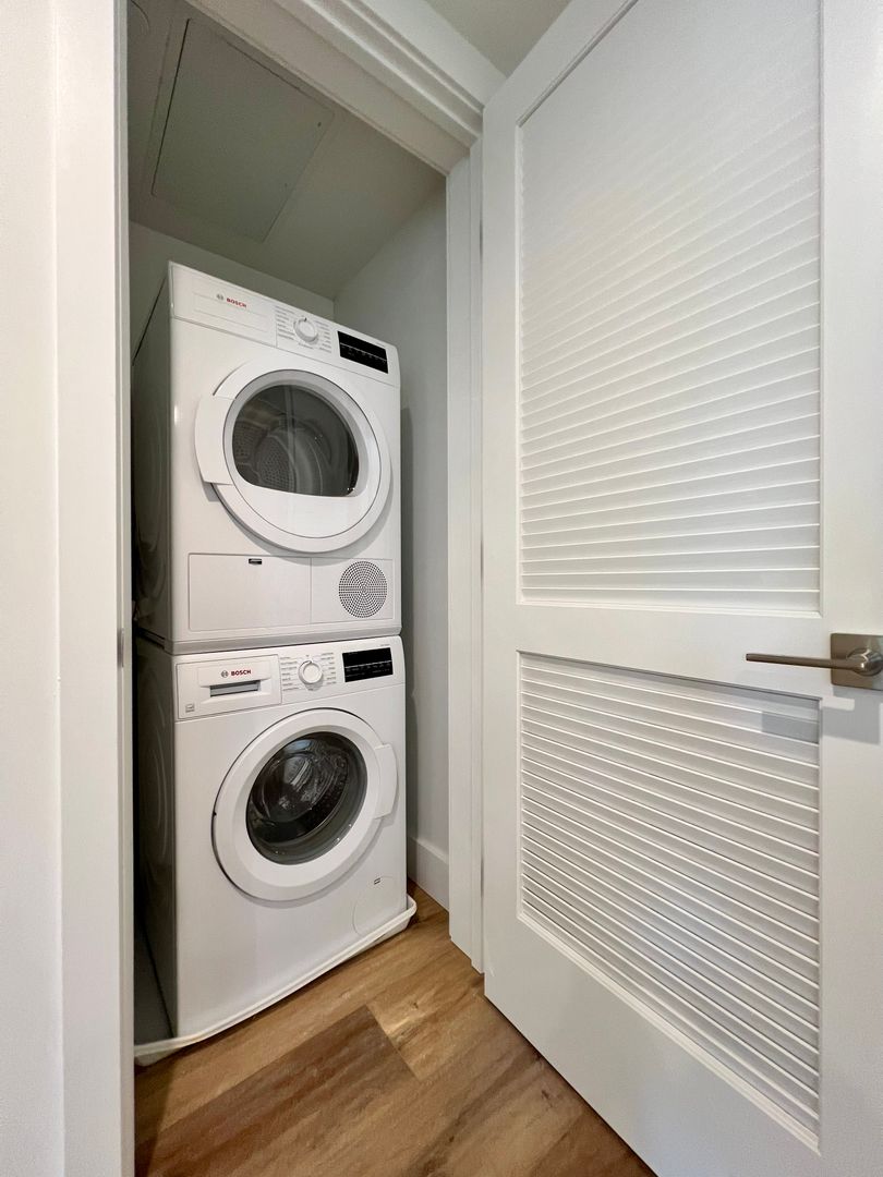 Upgrade your lifestyle in this luxurious 890F SF 1-bedroom 1-bathroom apartment residence featuring northern exposures, a private balcony and plentiful storage in-unit. This modern residence boasts top-of-the-line amenities such as stainless-steel Samsung appliances, Latch access system, central AC/heat with Nest thermostat, high ceilings with LED lighting, wide plank wood flooring, and oversized walk-in closets with customizable closet systems. Spa like bathrooms with custom tilework, and Bosch laundry appliances all add to the luxury and convenience.