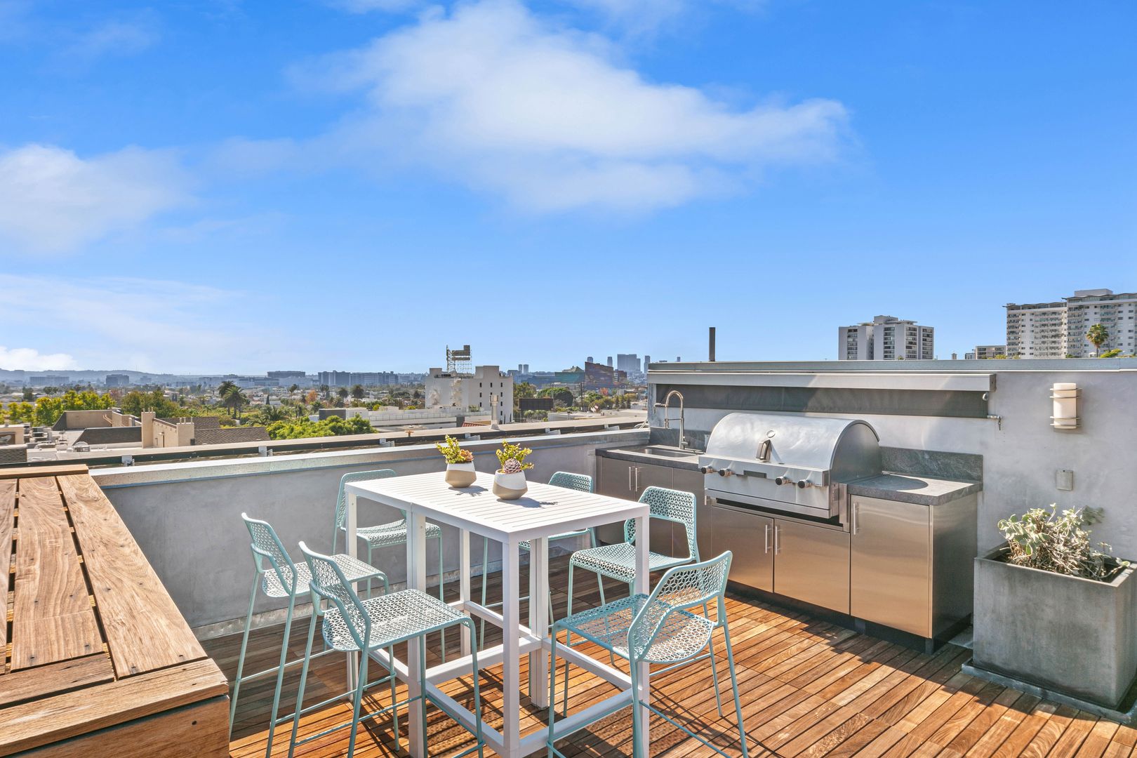 Empire Property Group is proud to present unit 102, a spacious 2 bedroom 2 bath residence on the 1st floor of the property. At 1220 SF, this corner unit features northern and western exposures providing beautiful natural light. The well-designed layout has a generously sized open concept living and dining space, 10 FT ceilings, floor to ceiling windows, and a 210 SF private terrace to enjoy LA's beautiful weather. Italian designed cabinetry, quartz countertops, stainless steel appliances, gas fireplace, ample storage, and in-unit washer and dryer are just a few of the features that make this unit a must-see.